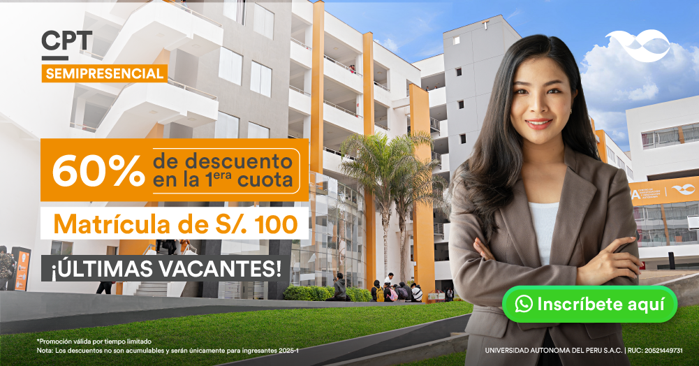 -La Universidad Autónoma del Perú se reserva el derecho de modificaciones en plana docente y cierre de aulas por no cumplir con el mínimo de estudiantes matriculados requeridos por la institución.